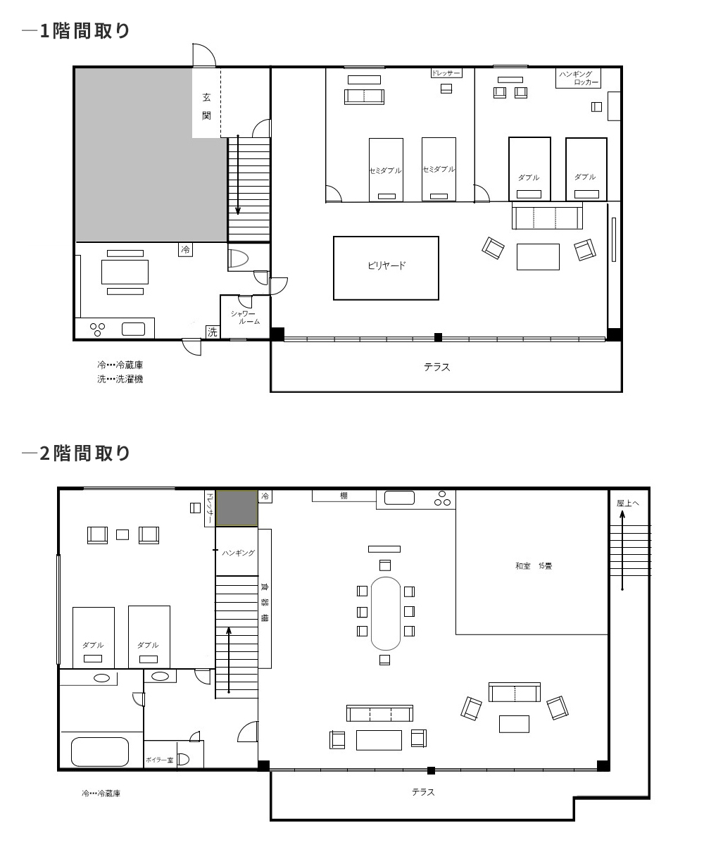 電子レンジ、冷蔵庫、調理器具、基本調味料、精米をご用意しております。
